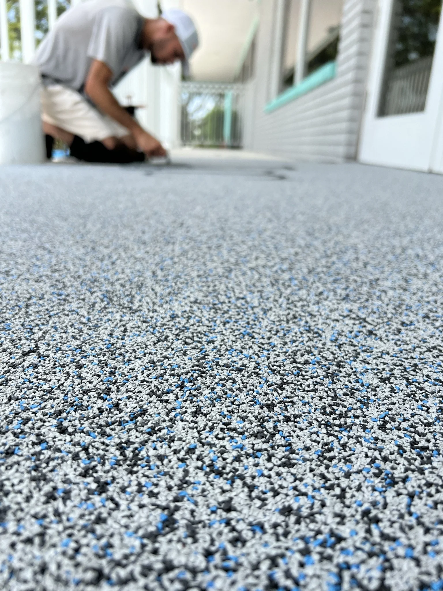 A seamless, slip-resistant rubber surfacing poured in place. It’s flexible, impact-absorbent, cooler than concrete, and customizable.